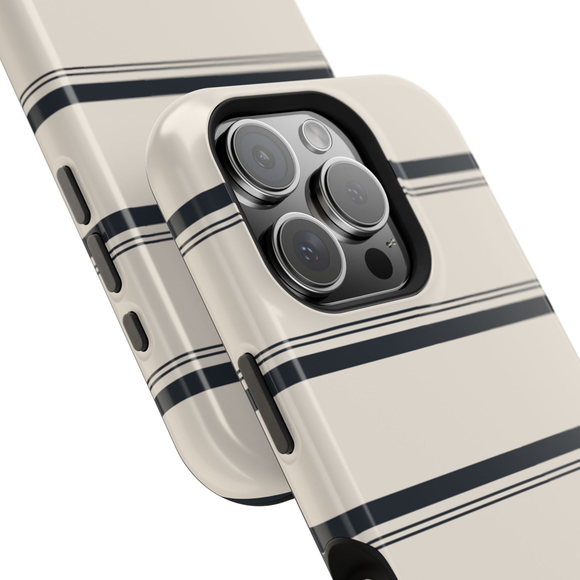 Classic meets chic in this simple, yet elegant personalized iPhone case. The timeless black and cream striped pattern adds a touch of sophistication to your phone, while your customizable initials make it uniquely yours.