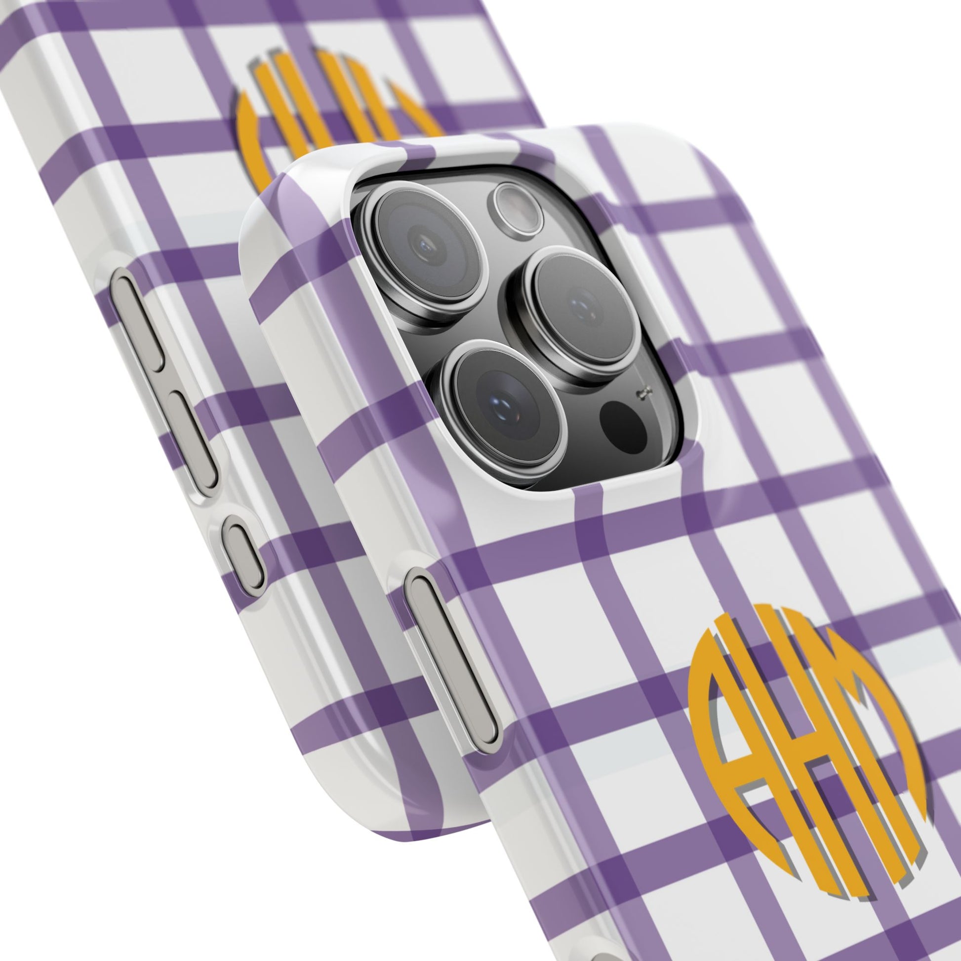 Bring preppy vibes to your everyday carry with the Tailgate Tartan personalized slim iphone case. Designed for style and durability, each case is fully customizable with your initials, name, or whatever you choose. Whether you’re team spirit proud or just love a preppy pop, this case is your go-to accessory.